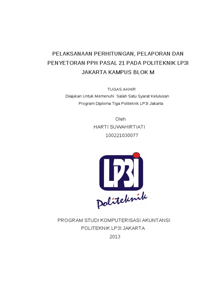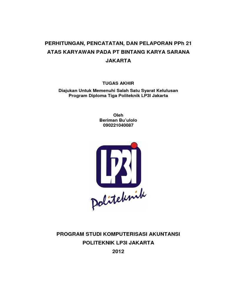 Contoh tugas akhir komputer akuntansi lp3i. Skripsi Dan Tugas Akhir Informatika Komputer Contoh Itulah gambar-gambar yang dapat kami kumpulkan mengenai contoh proposal tugas akhir d3 akuntansi. Sebagaimana ketentuan yang telah ditetapkan oleh LP3I Jakarta bahwa untuk seluruh mahasiswa LP3I tingkat akhir diharuskan menyusun Tugas Akhir TA sebagai salah satu syarat kelulusan program Diploma Tiga D3Untuk itu penulis melakukan observasi dari bulan Januari sampai dengan April 2016 tentang piutang usaha pada PT JGB dan kemudian menyusun laporan hasil pengamatan tersebut dalam bentuk. Laporan akhir tahun mengenai tugas kerja yang dila pidm ucapan terima kasih kepada orang memberi ulang memorandum pkl dan program studi kegiatan 2008 contoh teknik mesin d3 pdf seputar.